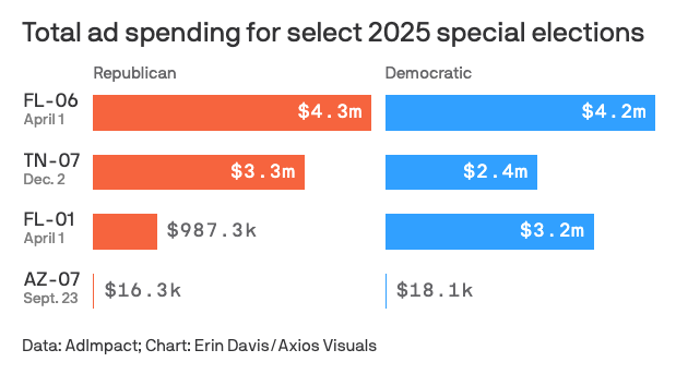 As if we needed more proof Kerr has no interest in finding the best path to Democratic victory, at no point does he address the large discrepancies in campaign spending. Of all the red state special elections this year, Aftyn Behn spent the least (except in Arizona’s 7th district, where both parties held back their cash on a guaranteed blue seat). Unlike her peers in Florida’s 6th and 1st districts, Behn was outspent by a million dollars. Comparatively, in Florida’s 1st district, which saw the largest swing towards Democrats from the 2024 presidential, the Democrats spent $4.2 million and lost by 14 points. In Florida’s 1st, they outspent the Republicans by 300% and still lost by 14 points. Cutting through the nonsense, we can see that Aftyn Behn’s better performance with less money is a model for Democrats to emulate, not one to be dismissed because it threatens Reid Hoffman’s tax rate.