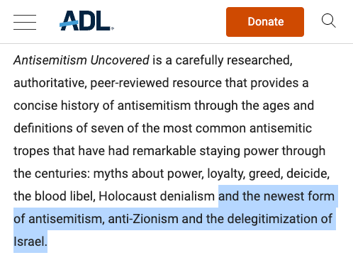 As I’ve written previously, Zionism, the belief that there should be a Jewish ethnostate, is a political ideology entirely detached from being Jewish. Being anti-Zionist does not mean one is antisemitic, just as one can be pro-Zionist and antisemitic. Many Jews are anti-Zionists, while many Zionists are not Jews. Criticizing Israel is fine. Criticizing Jews is hate. The ADL knows the difference between the two but still chooses to blur the line between them to give political cover to Israel’s well-documented apartheid and occupation of Palestine.