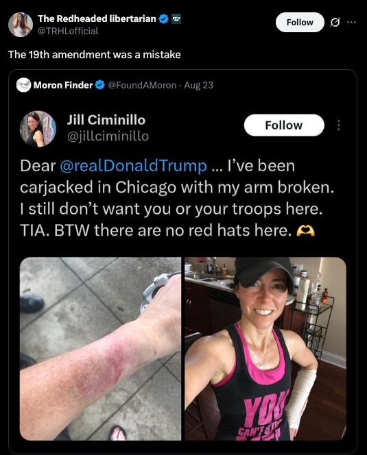 about her work studying the “Womanosphere” — a network of conservative women influencers who preach traditional gender roles, patriarchy, and subservience, despite leading multi-million dollar businesses and opining on politics (instead of listening to their husbands, who Jesus Christ made better at brain-thinking). Her thoughts are spelled out in the episode, but the TL;DR is that Katie couldn’t get a straight answer to a simple question: “What is modern conservatism?” The women at TPUSA and other conferences called themselves conservatives, but favored abortion rights. From the stage of a political convention, they told other women to stay in the kitchen and leave politics to men. To put this phenomenon into its most bizarre form, I’m mystified by the right-wing women political commentators who advocate for repealing the 19th Amendment because they don’t think women should discuss politics… which undercuts their existence as women who talk about politics.Outside of the Womanosphere, this question sticks with me. In 2025, what is a conservative? It’s certainly not any of the things National Review claimed it was during the Obama years. As Trump attempts to end birthright citizenship and run for a third term, conservatism certainly doesn’t care about constitutionalism. Neither is there a regard for America’s global reputation, which Trump has driven lower than his own approval rating. Claiming individual freedom is a joke when the conservative Supreme Court says cops can stop you for your skin color, and anything about traditional family values is a nonstarter.1 So, in 2025, what is conservatism? What is it that unites the MAGA coalition together?