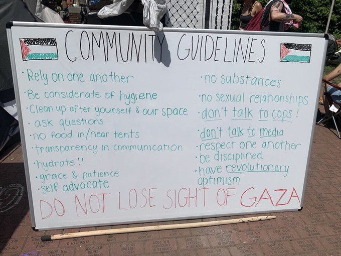 The students have reconciled this mistake by instituting structure into their encampments. To avoid press defamation, they’ve designated trained media spokespeople and instituted “don’t talk to press” rules for other participants. While mainstream reporters have been pearl-clutching for weeks about this “authoritarianism,” it’s exactly how other political bodies (such as parties and campaigns) operate. The foresight to avoid media misrepresentation and organize encampment structures shows the students are taking their movement with the seriousness it deserves.