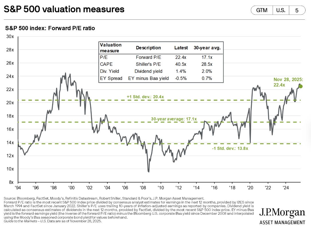 Currently, we’re sitting in the pre-pop stages of the AI bubble. The above claims about AI by tech oligarchs range from overpromises, to delusions, to lies that would make a Scientologist blush. The tales of infinite life and the reinvention of humanity worked well and attracted investment. I’d argue they worked too well. Now, the product can’t live up to the promises, and we’re starting to see signs. An AI startup called Thinking Machines recently achieved a $10B evaluation without showing investors a product or a plan. (People really invested billions in vibes alone.) Of the companies using AI, 95% of them haven’t seen a positive return, a subject of great concern at a manufacturing conference I recently attended. Most concerningly, the S&P 500 is trading at valuation levels only seen in the years before the Dot Com bubble burst (excluding the COVID collapse and spike).
