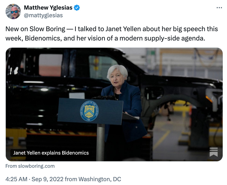 The Biden Administration taking policy ideas from the Slow Boring newsletter is profoundly depressing.
