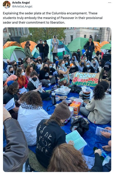 ‘s recent essay on the matter.) Everyone from Joe Biden to Jake Tapper has tried to slander the protestors as “antisemitic,” an Orwellian claim given the flagship Columbia protest (and many others) are disproportionately Jewish and held Passover celebrations.
