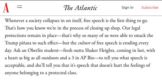 Sarcasm aside, it’s important to diagnose the true intent of these former “free speech absolutists.” While many have accused this cadre of unabashed hypocrisy, I think this is the wrong diagnosis. People like Ben Shapiro, Tom Cotton, and Caitlin Flanagan aren’t hypocrites. They’re fascists.