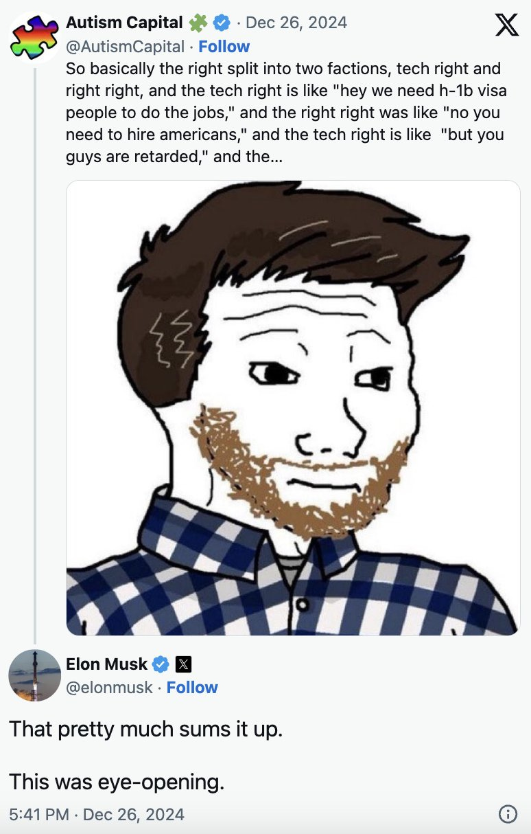 When Musk chimed in to defend Vivek and the H-1B visa program, the MAGA world cracked faster than a Proud Boy being questioned by the FBI.