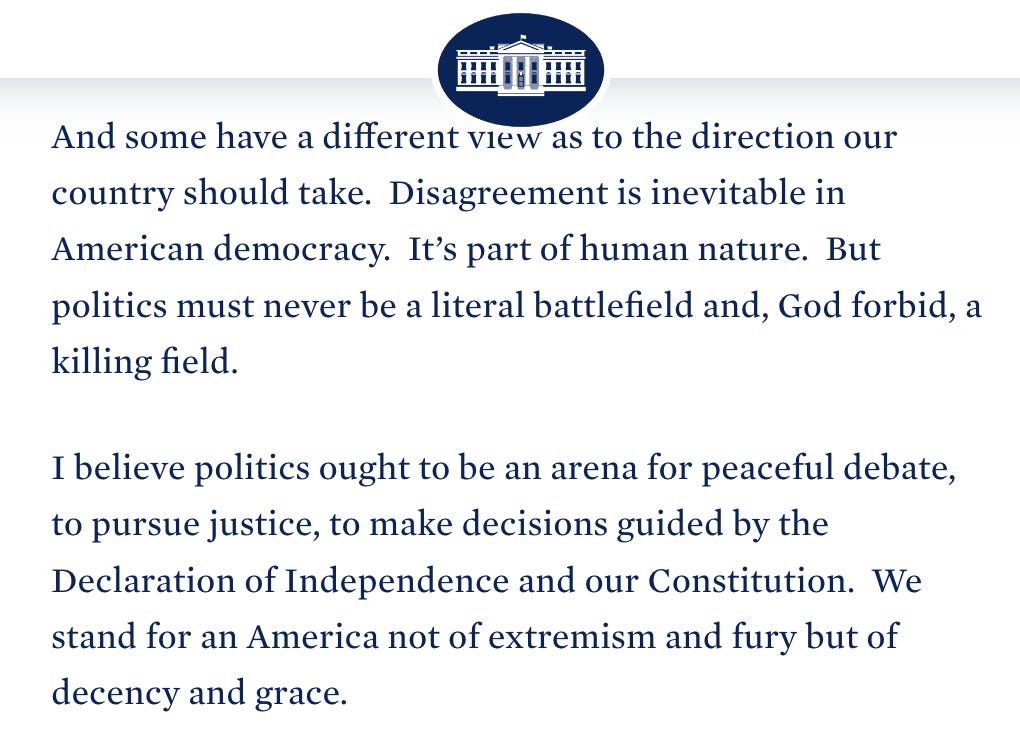 Great take, Joe. The political elites think they are untouchable until an event like this shatters the illusion. Then they come out singing Kumbaya and preaching peace love and understanding. Hipocrites.