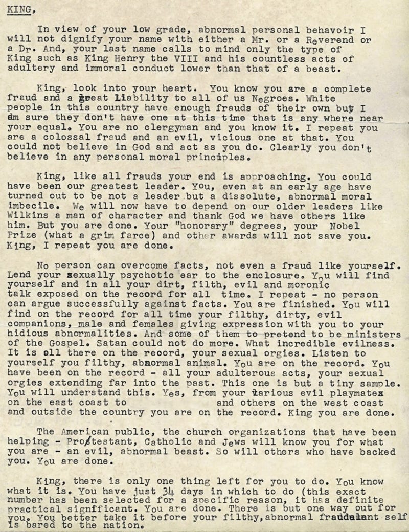 It’s essentially a “trust me, bro” from the U.S. government, which has since admitted it tried to blackmail King into committing suicide.
